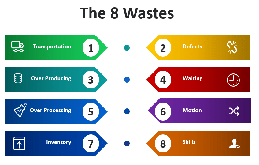 Applying an 8 Waste Analysis we can see multiple sources of waste in the process.