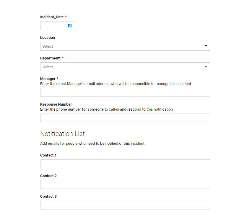 Enter the data for a sample incident and put your email address as the manager. You can even include some of your peers in the Contact 1, 2, and 3, boxes by entering their email addresses to allow them to see the capabilities first hand. Note that they will also receive the notification. When you push submit you (and any additional contacts) will receive an email notification of the incident details. Imagine the simplicity and efficiency of scaling this to your organization where incident occurrences and critical details are shared real-time.