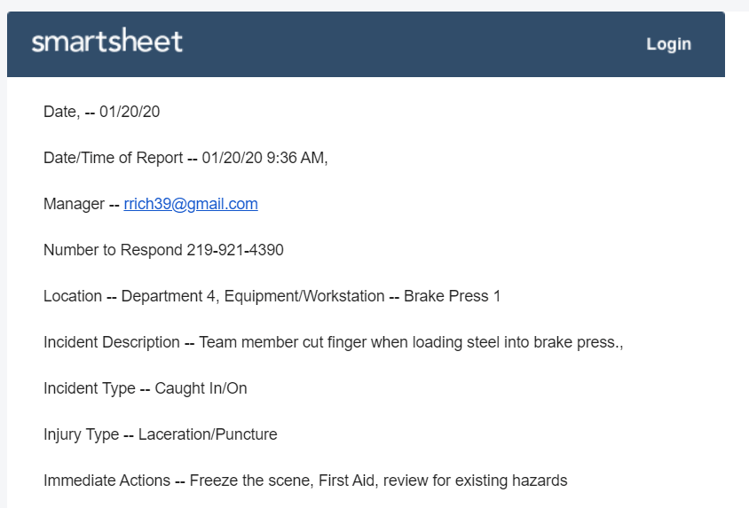 The number one reason I have used and recommend using smartsheets is the ability to provide real-time notification via email, text messages, or Microsoft Teams the moment an incident occurs eliminating the waste of waiting for critical information about the current state of organizational safety.