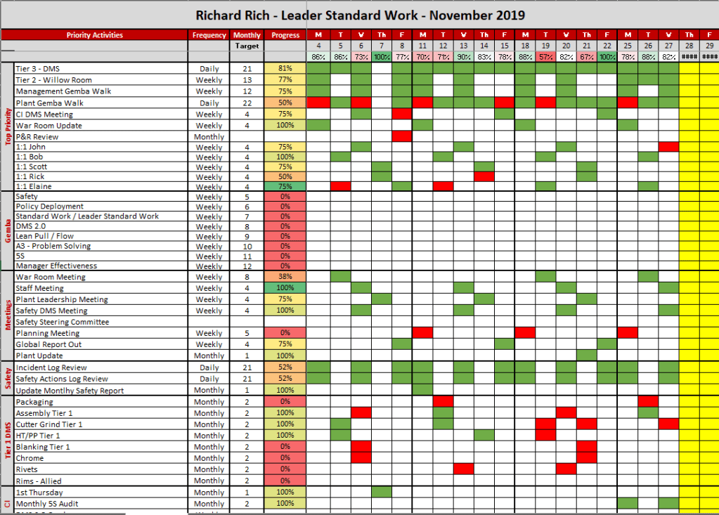 Once we had identified some of the KPIs, we set up a visual management board in our production office area. We held multiple training sessions with multiple departments and even enjoyed “mock” meetings where we got to do a meeting and offer feedback and support to each other. It actually turned out to be quite fun.